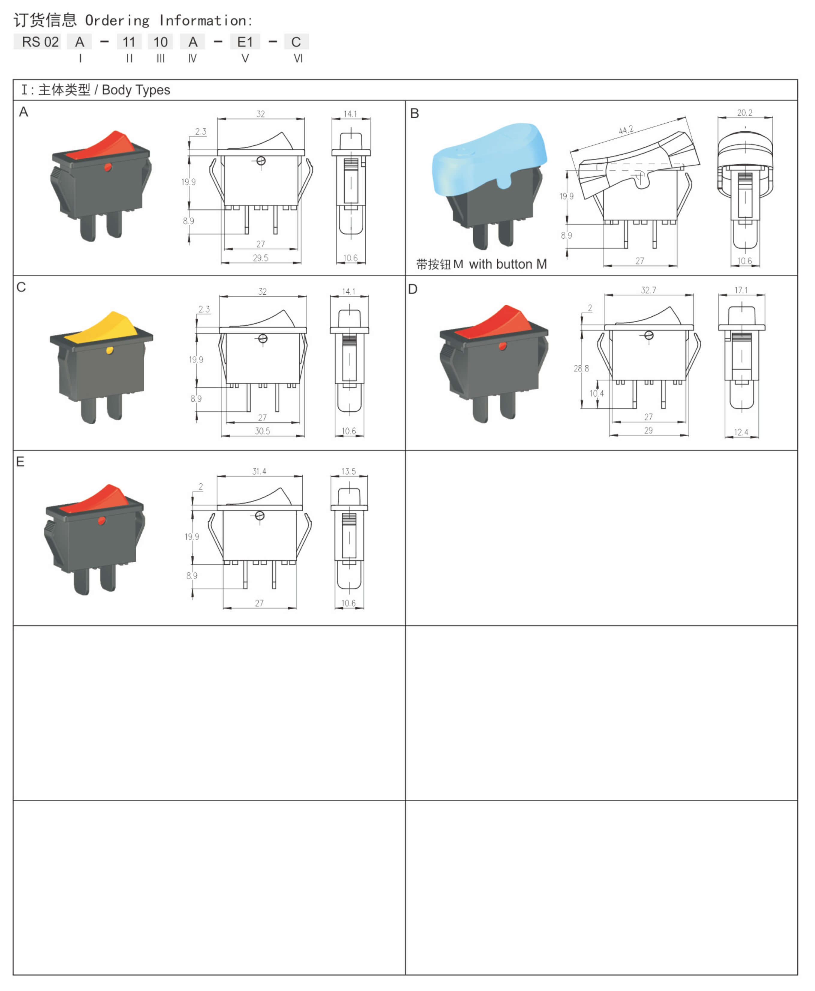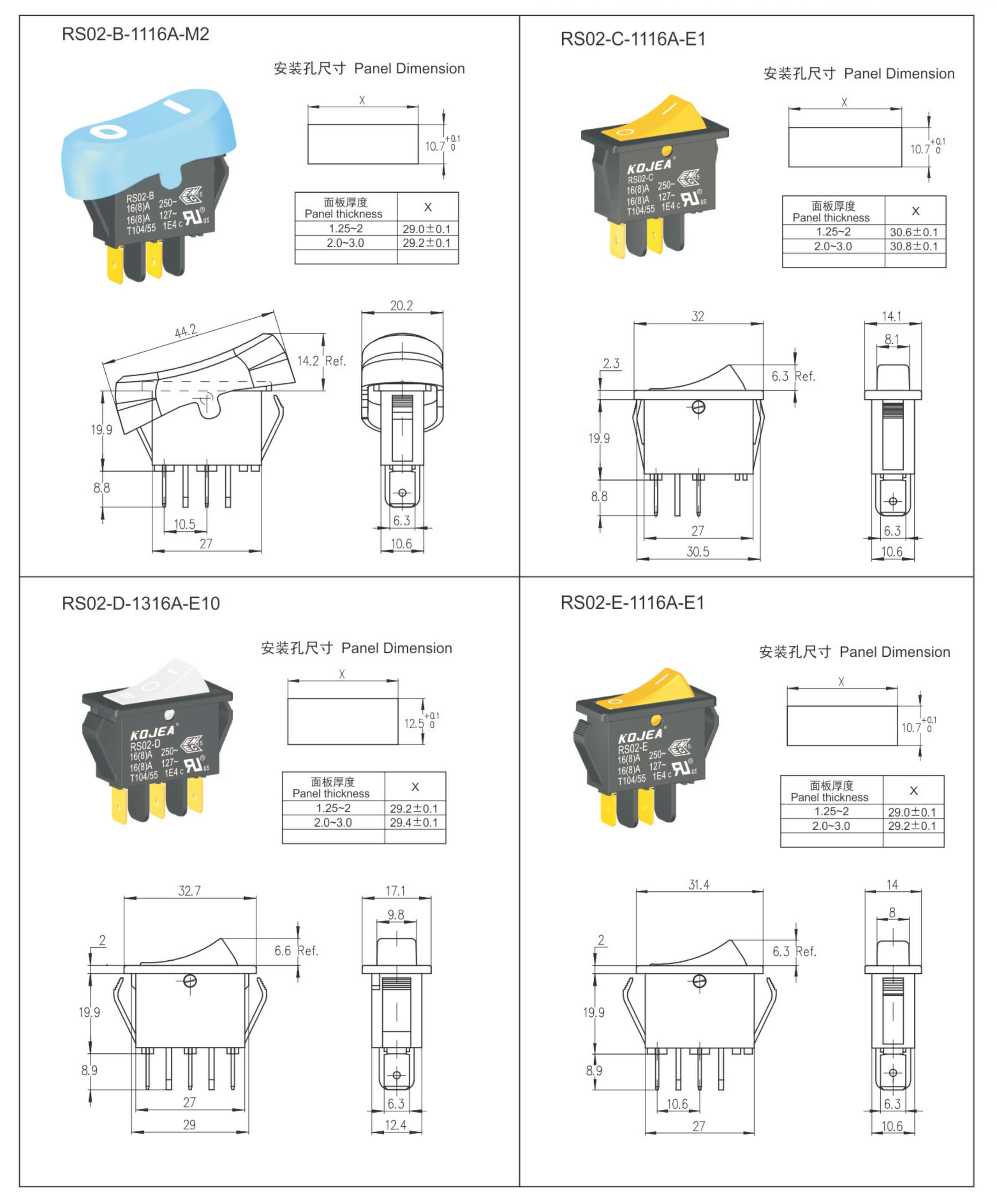 ◆ RS02 系列是一款标准型的跷板开关,也通称船型开关,波形开关等,有普通结构、带防护罩防尘防水和内部防尘结构两款可以选择。用途极广,装上防护罩后可实现防尘防水功能,广泛应用于各类家用电器及办公设备,如:热风枪,电吹风,电扇,打印机,家用吸尘器,干湿桶式吸尘器,高压清洗机等等