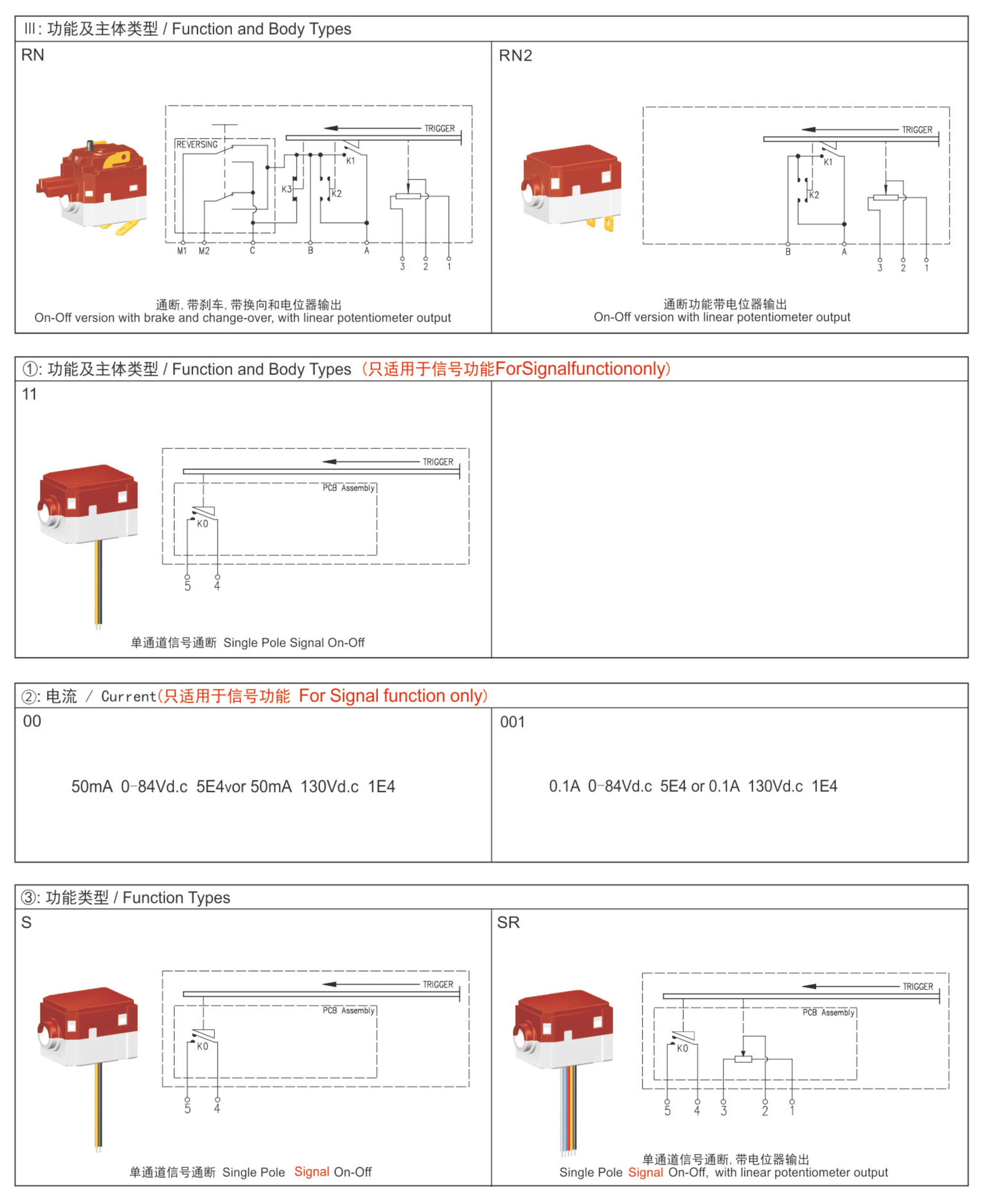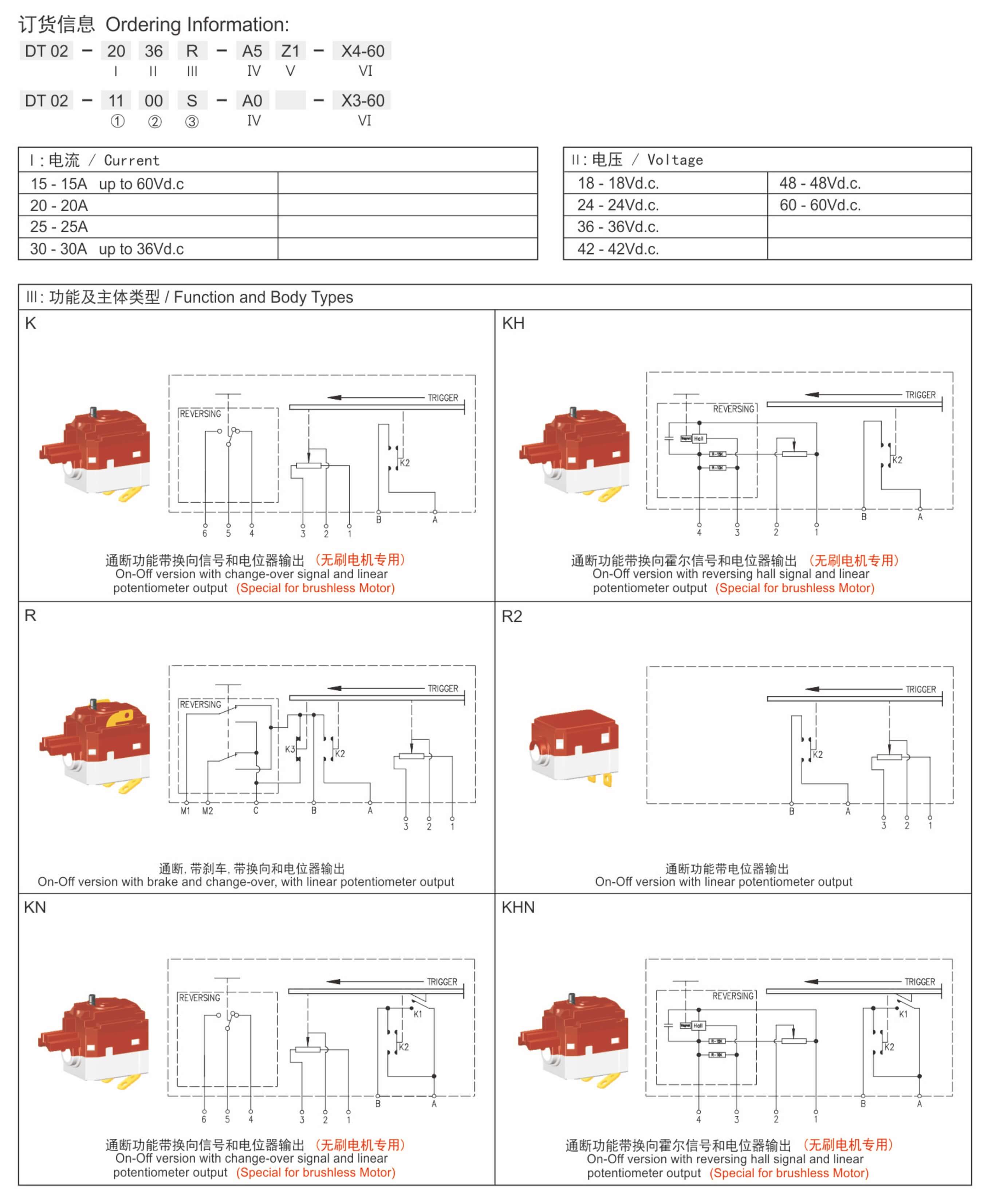 → On-off with reversing signal indication and linear potentiometer ouput (Special for DC brushless applications)