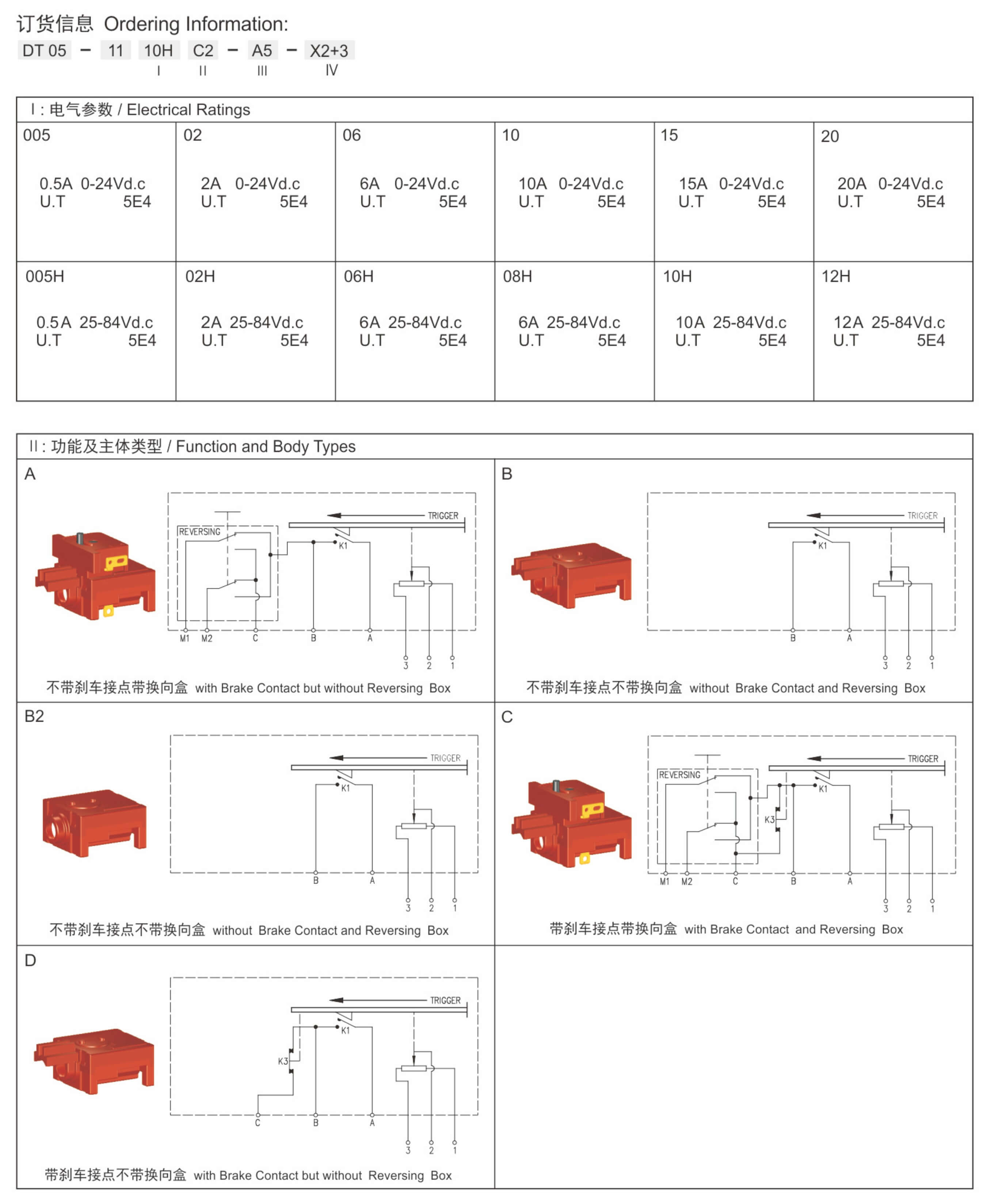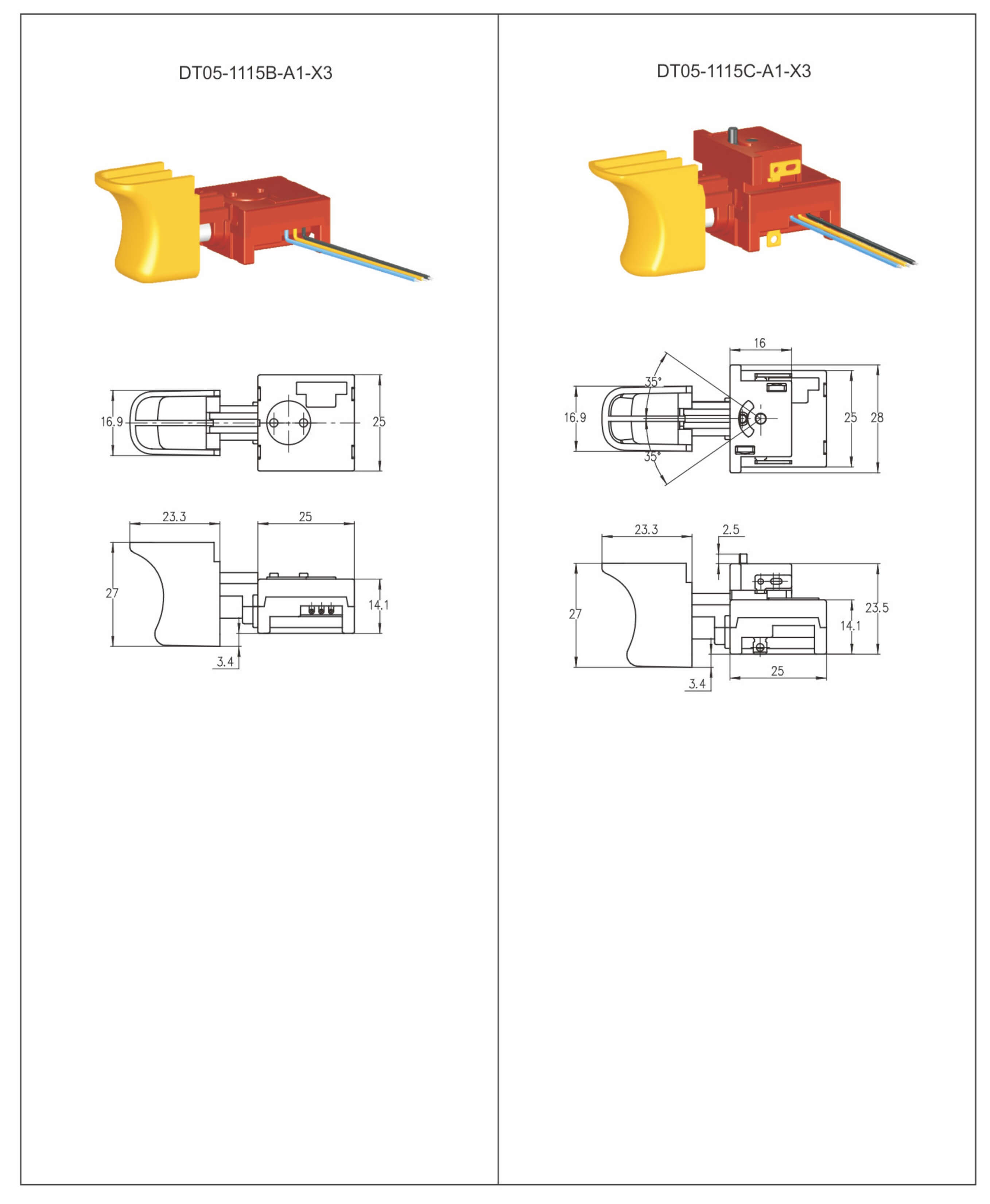 ◆ DT05 series are general type DC trigger switches, integrated dustproof and mechnical brake contact, commonly for used in DC cordless portable power-tools and gardening power-tools such as: Cordless Drills, Cordless Screw Drivers, Cordless Blowers, Cordless Grass Trimmer,etc.