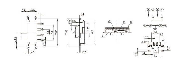 Function and band selector switches for headphone stereo sets, lquid-crystal TV sets, car radios, camera VCRs, MP3, memory cards, etc.